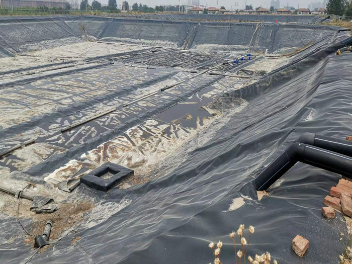 垃圾填埋场调节池内防渗土工膜的铺设作为防止臭气污染周边环境的一种有效且经济的措施,近年来国内垃圾填埋场逐渐采用,因为铺设一层防渗土工膜能有效